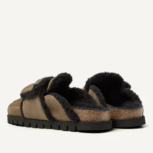 Elevate your comfort with the Teddy Fur slip-on in dark green suede, accented with black fur. These slippers are handcrafted from supple suede, offering a striking contrast between the deep green exterior and cozy black fur lining. With a velcro strap, cork sole, and lightweight outsole, these slippers are designed to keep you comfortable and stylish all day long.